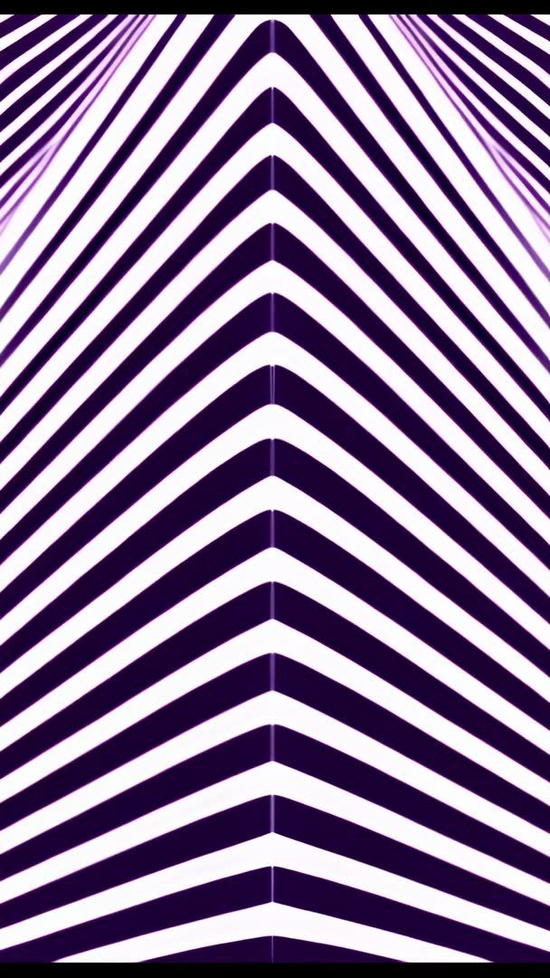 AI Generated Image. Vertical video showing purple-white chevron stripes moving upward in seamless loop, pulsing with shimmering highlights and producing hypnotic optical effect. Bold high-contrast geometry creating sense of motion and depth, lending modern futuristic vibe. Perfect for social media reels, mobile wallpapers, VJ loops, music visualizers, event projections, app intros, and promotional backgrounds. Clip working well as attention-grabbing opener, transition element, or ambient backdrop behind text and product overlays. Color palette and speed adjustable for brand matching; loopable format enabling continuous playback for live events and digital signage. Recommended uses: background for electronic music videos, nightclub visuals, fashion campaigns, tech presentations, and creative advertisements.