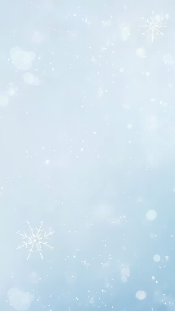 AI Generated Video. Looping vertical 9:16 winter animation showing snowfall drifting over soft blue gradient with delicate snowflakes and bokeh particles. Creating calm, serene atmosphere for holiday and seasonal projects. Serving social media stories, mobile wallpapers, vertical video ads, title backgrounds, livestream overlays, digital signage, intro screens, greeting cards. Allowing text and logos to be placed in center due to open negative space. Providing seamless looping for continuous playback. Suiting relaxation apps, meditation videos, store holiday displays, wedding winter themes, promotional content. Recommending slow motion playback and soft color grading toward cool blue tones to enhance frosty mood. Suggesting subtle brightness and contrast adjustments plus light sparkle overlays for added depth and visual interest.
