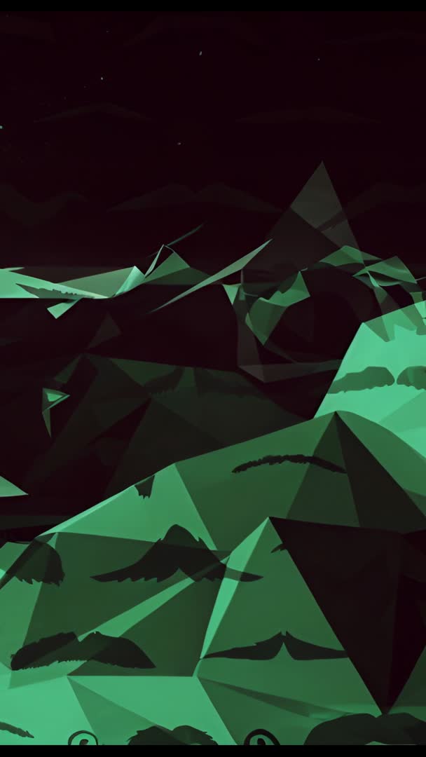 AI Generated Image. Showcasing low-poly mountain peaks in layered teal and black tones, with bird silhouettes gliding across dark red sky. Vertical frame creating cinematic tall-screen composition ideal for mobile and social platforms. Working as ambient background for music videos, meditation loops, title sequences, app splash screens, social stories, and cinematic transitions. Suggesting color grade toward teal-green palette to maintain moody surreal vibe. Recommending overlaying minimal text or logo in upper negative space, animating parallax layers for added depth, and pairing with slow electronic or orchestral ambient soundtrack. Providing loop-friendly edit by matching start and end frames for seamless playback and creating repeated background for long-form visuals.