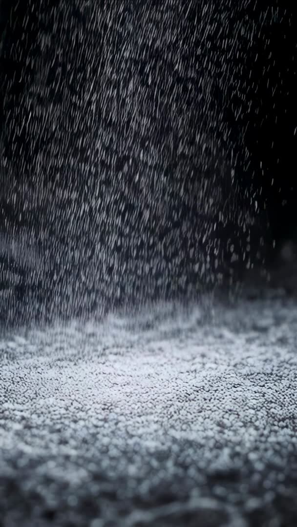 AI Generated Video. Vertical macro video showing white plastic pellets falling and building pile under dramatic side lighting, creating textured granular surface and soft bokeh. Serving industrial and manufacturing content, materials science presentations, product packaging promos, and educational clips about polymer processing. Working well as looping background for vertical social media ads, hero clips for product pages, motion graphics overlays, or texture layers in compositing. Editing tips: speed ramping to emphasize slow falling motion, color grading toward cool tones for clinical look or warm tones for crafted feel, cropping for mobile-safe framing, adding subtle ambient sound design to enhance realism. Technical notes: high contrast side lighting producing strong highlights and deep shadows, shallow depth of field focusing on granule accumulation, fine motion blur on falling pellets providing sense of movement.
