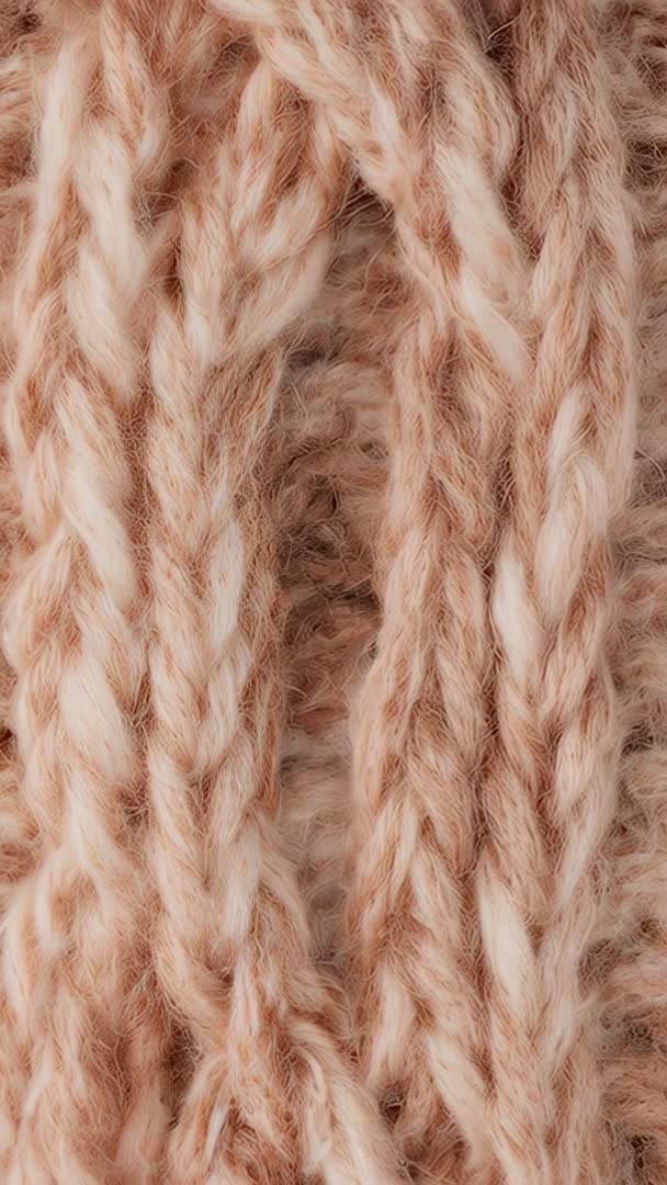 AI Generated Video. Panning slowly across ribbed mohair knit, revealing braided stitch structure and soft halo. Creating warm beige and cream palette, conveying cozy tactile mood. Highlighting shallow depth of field, fiber fuzz, and yarn twist with studio lighting. Working well for looping backgrounds, product overlays, social media stories, and fashion reels. Serving as texture lead for textile websites, craft tutorials, packaging mockups, and blog headers. Providing edit-ready vertical composition (9:16) optimized for mobile and social platforms. Suggesting color grading: boosting warm tones and softening contrast to emphasize halo and fuzz. Offering motion-friendly footage for slow-motion and seamless loop editing in lifestyle, winter fashion, and DIY knitting campaigns.