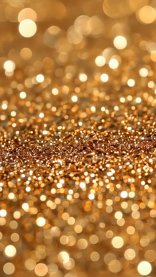 AI Generated Video. Showing slow rack focus across gold metallic flakes and creating warm bokeh highlights and shimmering reflections. Perfect for adding elegant shimmer to title sequences, social media stories, mobile ads, product promos, holiday campaigns, and luxury branding. Use as loopable vertical background or overlay with screen/blend mode for soft glow effects. Place headline text in upper third for strong contrast, pair with soft ambient music for cinematic mood, or cut into transitions and intros for festive edits. Ideal for beauty and jewelry promotions, wedding motion invites, celebration graphics, seasonal landing pages, and packaging animation.
