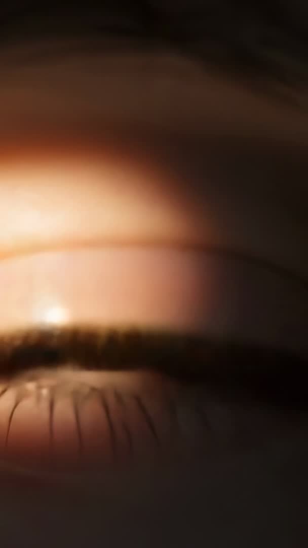 - Vertical macro video showing blinking eye responding to warm light with subtle iris shifts
