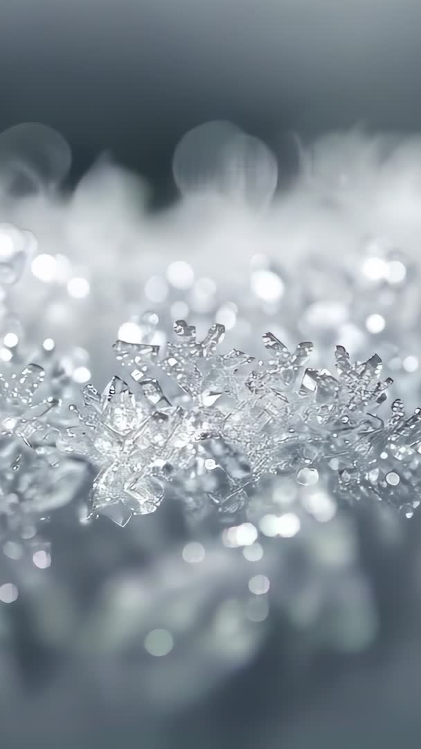 - Vertical macro video showing sparkling ice crystals on mirror with bokeh reflections