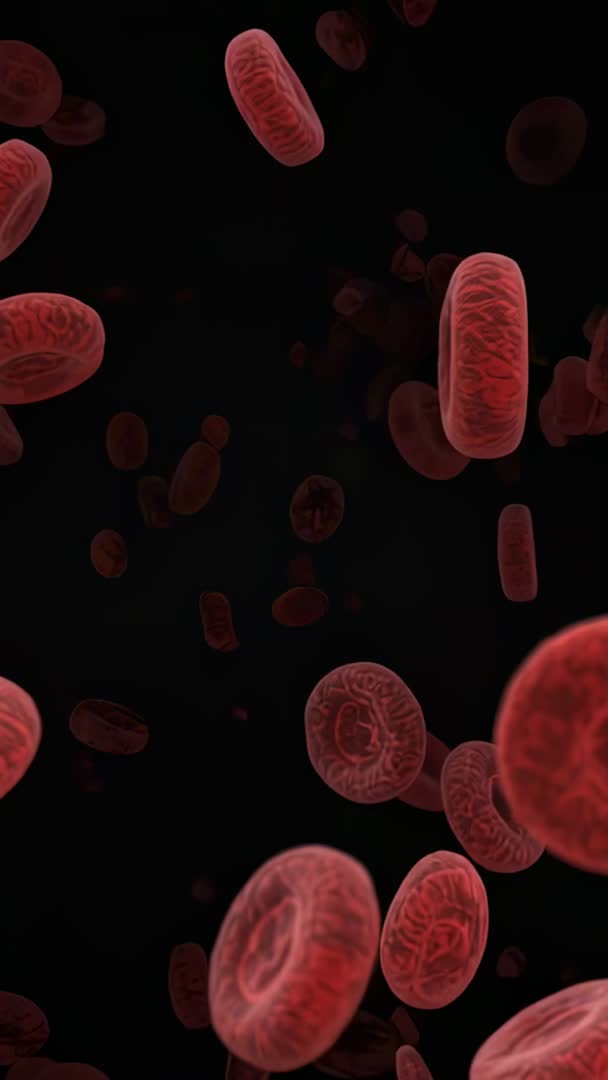 AI Generated Image. Vertical 9:16 video showing red blood cells drifting and rotating through narrow microvessel against dark background. 3D rendered cells displaying membrane texture and realistic fluid motion, emphasizing microcirculation and cellular dynamics. Useful for medical education, hematology presentations, biomedical research visualization, and healthcare marketing. Suitable as opener for documentary sequences, background for mobile health apps, social media vertical ads, visual aid in lecture slides, and patient education clips. Loop-ready composition for extended playback. Suggested postproduction: enhance contrast, add subtle slow motion to highlight cell behavior, and apply color grading for clinical tone.