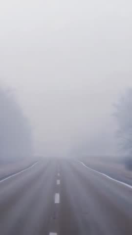 - Vertical Misty Highway Journey Moving Down Rural Road Vanishing into Fog
