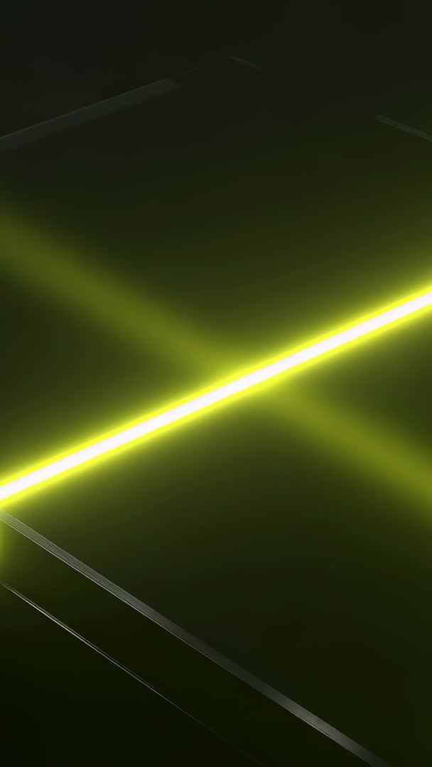 AI Generated Video. Presenting cinematic vertical video featuring neon beam crossing center while second beam is rising to form glowing X over metallic diagonal bands. High-contrast green-yellow glow and soft gradient creating futuristic, energetic mood. Perfect for tech promos, music visualizers, nightclub intros, mobile ads, and social media stories. Providing ready-made background for motion graphics overlays, title cards, UI transitions, and product highlight loops. Looping seamlessly for vertical stories and adapting to 9:16 crops for mobile-first content.