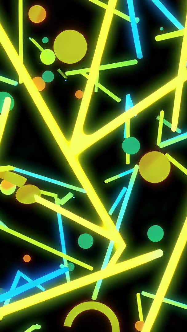 AI Generated Video. Vertical looped clip featuring neon branches pulsing and circular discs drifting across black void while hues cycle between cyan, lime, and orange. High-contrast glowing lines and floating particles creating hypnotic, kinetic atmosphere ideal for tech and music-driven projects. Loop-ready vertical format optimized for portrait screens and mobile-first platforms. Use for music-video backgrounds, social media reels and stories, TikTok and Instagram Reels, YouTube Shorts, app intros, event visuals, VJ sets, LED wall installations, live-stream overlays, and tech product promos. Suitable for adding motion to website hero sections, presentation slides, and digital signage. Color grading, speed adjustments, and rhythmic cutting recommended to match branding and music tempo.