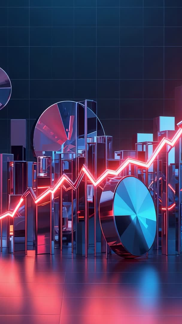 AI Generated Image. Looping vertical 3D animation showing neon red line pulsing and zigzagging across chrome bars and discs on grid. Serving technology presentations, data visualization intros, fintech promos, startup pitch decks, mobile app backgrounds, social media vertical ads. Illustrating analytics trends, market growth, digital transformation, futuristic UI concepts. Featuring color palette of neon red and cool blue creating high-contrast cyberpunk mood. Providing seamless loop for extended displays and interactive experiences. Practical usage tips: placing headline text in top third, overlaying semi-transparent charts, syncing pulsing line with upbeat electronic soundtrack, using short captions for social reels.