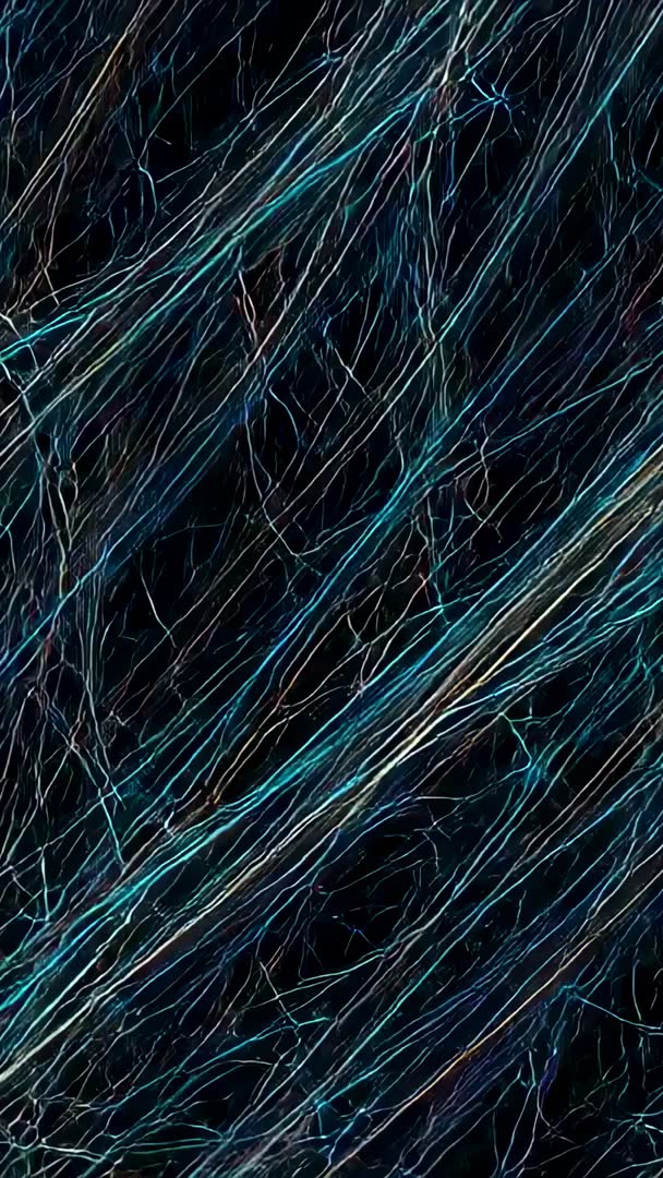 AI Generated Image. Vertical 9:16 video featuring neon lines drifting across deep black grid, creating dynamic futuristic mood. Electric blue and teal strands glowing and pulsing while fine filaments weaving diagonal paths, suggesting data flow and network activity. Seamless loopable motion and high contrast making clip ideal for tech promos, app intros, product presentations, live VJ sets, social media stories and vertical ads. Use as moving background behind titles and lower thirds, use as overlay with blend modes to add motion energy, or use as mobile wallpaper. Compatible with color grading and speed ramping. Perfect for cyberpunk, science fiction and digital art projects seeking sleek modern visual language.