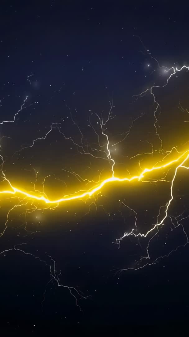 AI Generated Image. Vertical video featuring pulsing yellow lightning arc shifting right across navy sky with branching white electric forks, creating cinematic neon energy and cosmic atmosphere. Serving as mobile wallpaper, social media story background, intro for tech trailer, looping VJ visual for live events, title reveal for game or sci-fi content, background for product ads promoting energy and innovation. Supporting overlaying light or dark text thanks to high contrast; allowing color grading to tune warmth and intensity and speed adjustments for loop smoothness. Working well for branding, promotional campaigns, streaming overlays, music visualizers, broadcast graphics, and event projections. Delivering futuristic, high-voltage mood and dynamic motion for attention-grabbing vertical content.
