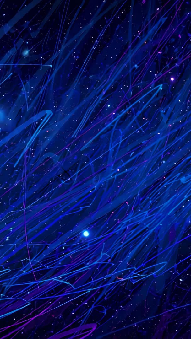 AI Generated Image. Vertical neon stream video showing pulsing blue and purple streaks drifting across dark cosmic backdrop, punctuated by glowing nodes and floating particles. Flowing motion creating depth and sense of speed, suiting looped playback and beat-synced edits. Serving as dynamic backdrop for vertical ads, social media reels, app intros, music visualizers, technology promos, sci-fi openers, VJ loops, mobile wallpapers. Placing behind overlay text or logo reveal, combining with slow zoom or parallax layers for extra depth, adding color grading to match brand palette, syncing particle bursts to audio for rhythmic transitions. Export recommendations: 9:16 aspect ratio, 1080x1920 or 4K vertical. Setting loop points for seamless playback, using blend mode screen or adding glow for highlights, reducing noise for crisp display on small screens.