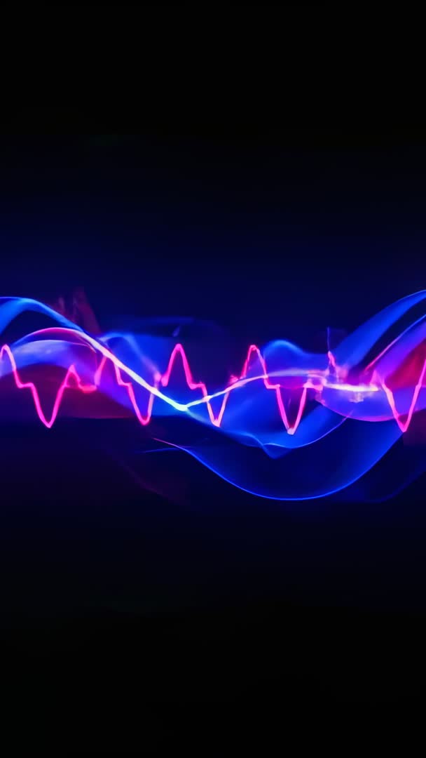 AI Generated Image. Animating vertical neon waveform with smooth blue ribbon and jagged magenta pulse moving across deep navy canvas. Featuring high-contrast glow and flowing gradients for futuristic, energetic mood. Providing loopable motion ideal for music visualizers, social media reels, mobile wallpapers, streaming intros, and tech product promos. Supporting overlay of titles, captions, lower thirds, and logo stings without visual clutter. Showcasing electric blue and vivid magenta palette that pops on OLED and smartphone screens. Recommending short loop lengths (5-15 seconds), 9:16 aspect ratio, and audio-reactive tweaks or particle overlays for enhanced immersion. Perfecting use cases include EDM promotions, podcast intros, VJ sets, UI animations, presentation backdrops, and vertical video ads targeting young, tech-savvy audiences.