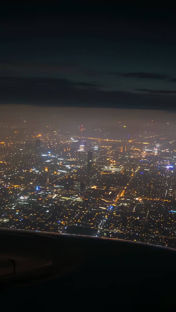 AI Generated Video. Vertical aerial descent capturing illuminated metropolitan grid through airplane window rim and partial wing. City lights glowing through low haze while skyscraper silhouettes punctuating skyline and streets forming glowing arteries. Footage offering cinematic bokeh, soft atmospheric layering, and subtle motion from approach toward runway. Ideal for travel vlogs, airline promos, destination marketing, and transportation or aviation stories. Useful as vertical social media background, app splash screen, title card backdrop, or B-roll for documentaries and news packages about urban life, infrastructure, or night economy. Works well with slow ambient music, stylized color grading, or as cutaway to establish aerial perspective in commercial edits.
