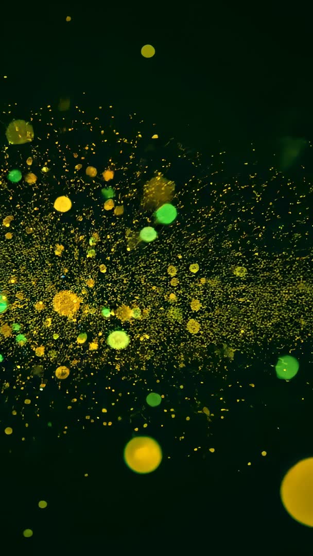 AI Generated Image. Abstract vertical motion clip showing green and gold particles bursting from center and forming drifting orb cloud against dark backdrop. Glow, bokeh, and glitter dust creating cinematic energy for title screens, intros, and transitions. Serving as dynamic background for social media stories, mobile wallpapers, music visuals, event promos, and product reveals. Loopable segment providing seamless ambient layer for UI demos, website headers, and presentation slides. Color grading flexibility allowing quick palette swaps to match brand identity. Delivering high-resolution 9:16 format compatible with Premiere Pro, After Effects, Final Cut for easy editing and integration.