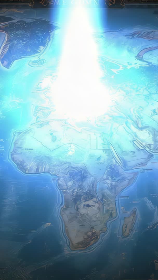 AI Generated Image. Vertical video showing intense azure beam descending onto world map, centering on Central Europe and creating pulsing data glow. Futuristic holographic style conveying global connectivity, geodata visualization and high-energy broadcast moment. Working well for tech presentations, news openers, cybersecurity or climate change segments, data analytics intros, corporate branding and app splash screens. High-contrast blue palette and dynamic light beam offering strong focal point for overlay text, logos or animated infographics. Editing suggestions include adding subtle particle effects, fast cut transitions and parallax map layers to increase depth and motion.