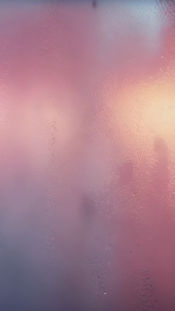 AI Generated Image. Showing vertical clip of silhouette appearing behind frosted glass while water droplets stream down and warm backlight glows. Evoking intimate, cinematic mood with soft pink and golden tones and delicate surface texture. Optimizing for vertical video and mobile-first platforms, working well for social stories, reels, and app backgrounds. Serving as atmospheric opener for romance commercials, spa and wellness promos, hotel bathroom features, and beauty or skincare campaigns. Providing abstract background for title cards, transitions, or product overlays, allowing easy color grading and slow-motion edits to emphasize movement and emotion. Pairing with soft ambient music or subtle Foley for soothing vibe, or with tense low-frequency sound design for thriller sequences.