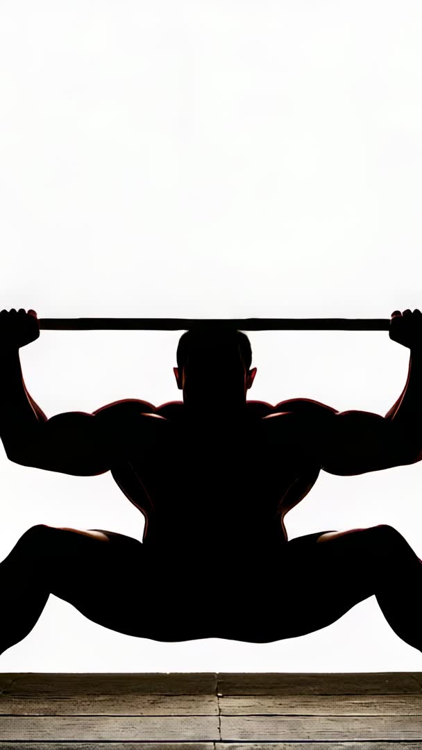 AI Generated Video. Showcasing powerful silhouette of lifter performing deep squat and driving barbell to full lockout on wooden platform. Featuring backlit high-key lighting, creating strong contrast and clean outline to emphasize muscle mass and explosive movement. Offering ample negative space above subject for headline, logo, or caption overlay in vertical formats. Working well for fitness app intros, social media Reels, TikTok and YouTube Shorts, gym promotional clips, strength training tutorials, and motivational ads. Serving as attention-grabbing hero clip for landing pages, mobile ads, print posters, or broadcast promos after slight color grading. Providing anonymous silhouette focus to maintain privacy while conveying raw power and technique. Suggesting editing ideas such as slow-motion highlight at lockout, split-screen technique breakdown, and punchy soundtrack for high-energy content. Targeting athletes, coaches, personal trainers, fitness brands, and sportswear marketers seeking bold visual for strength-focused campaigns.