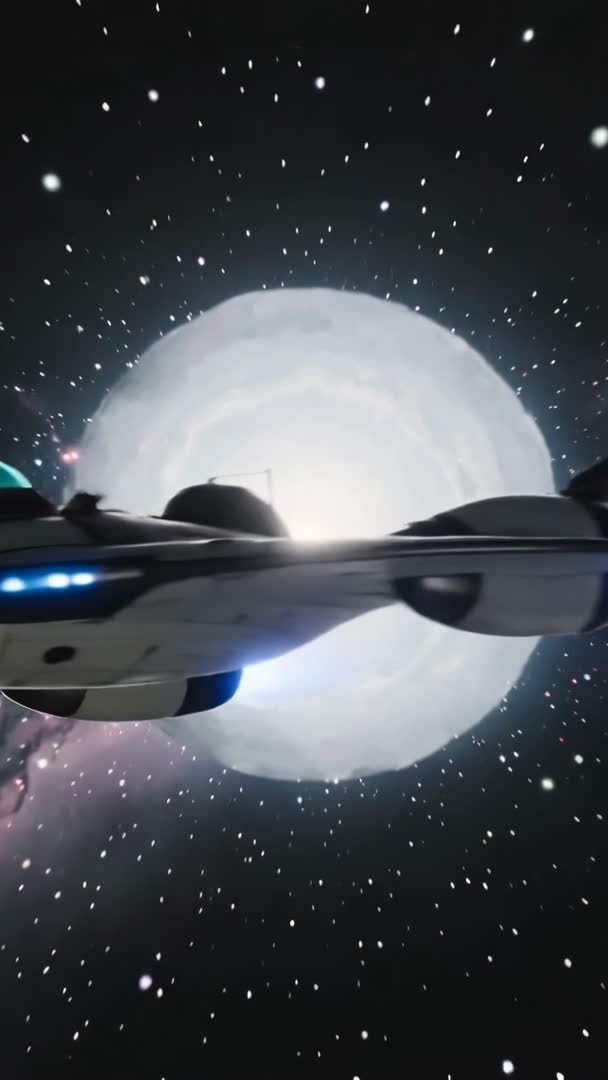 - Vertical spaceship accelerating through glowing portal into starfield, engines flaring into hyperspa