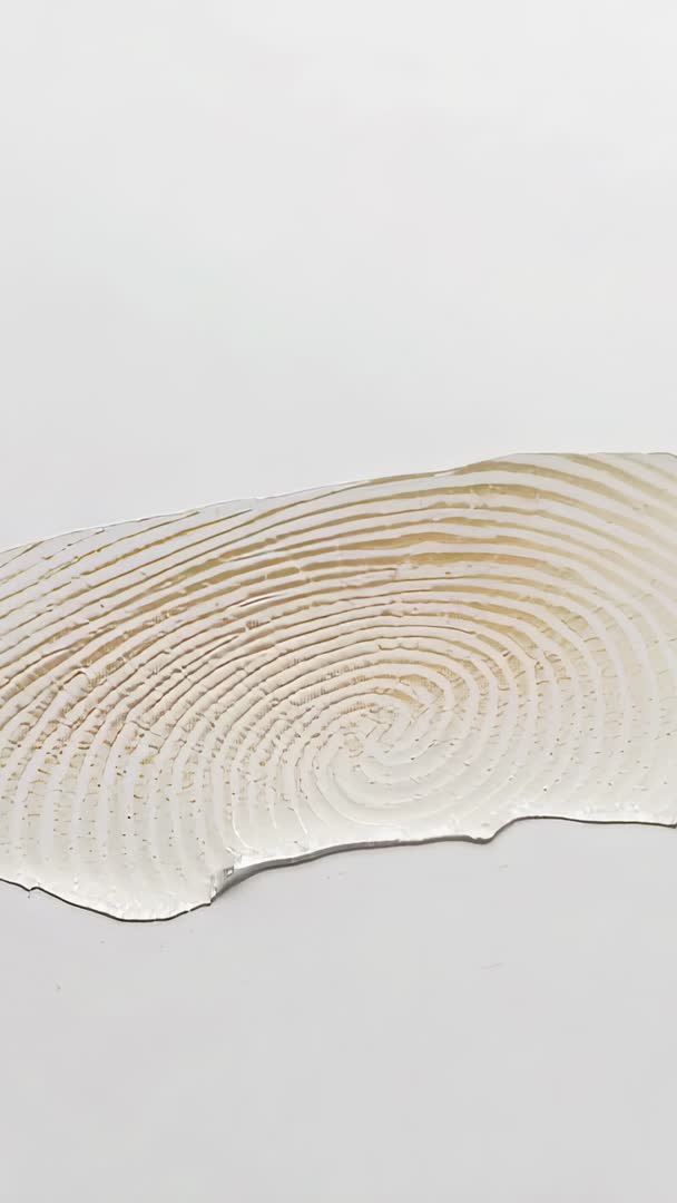 AI Generated Video. Showing close-up vertical footage of translucent strip with spiral ridges moving under soft studio light on white background. Capturing detailed fingerprint-like concentric pattern with slow lateral camera shift and gentle parallax. Providing minimal, high-key visual ideal for backgrounds, title intros, or mobile app hero banners. Supporting creative uses such as biometrics or security concept visuals, cosmetic or skincare branding, modern art or architecture motif, and scientific or educational explainers about texture and pattern. Offering loopable clip potential for social media reels, product showcase overlays, and website headers. Including negative space for on-screen text or logo placement and neutral color palette for easy color grading.