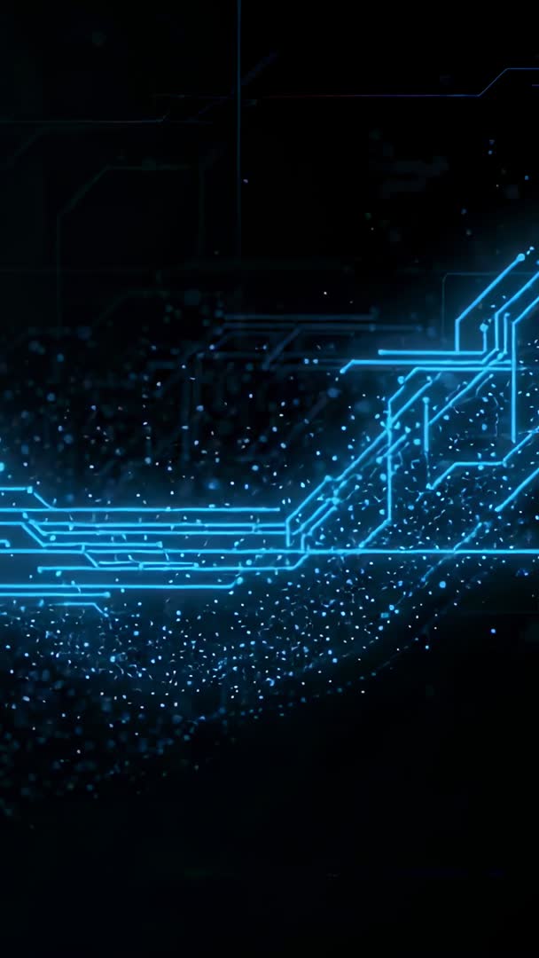 Vertical Tech Motion: Blue Neon Circuit Network Branching with Streaming Particle Flow Video