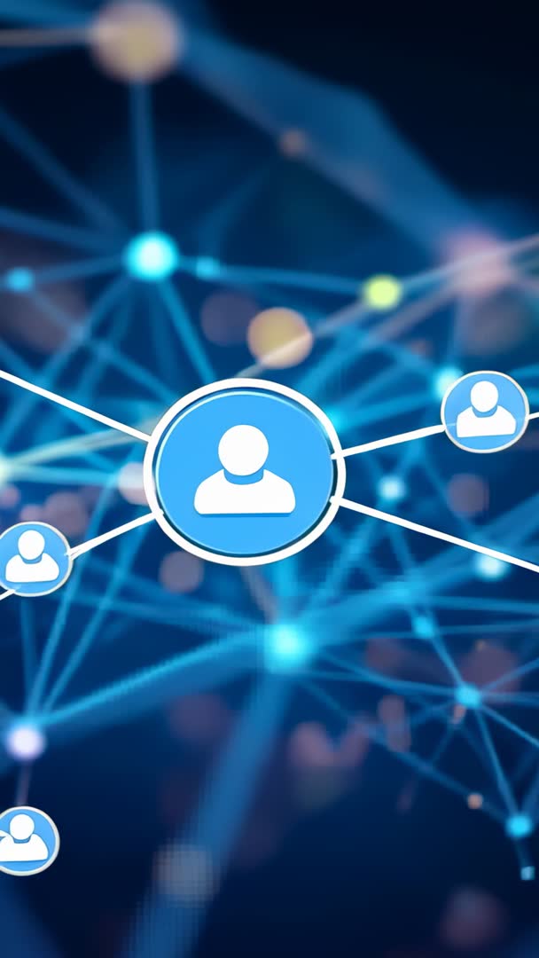 - Vertical tech video showing central user node connecting surrounding nodes in digital network