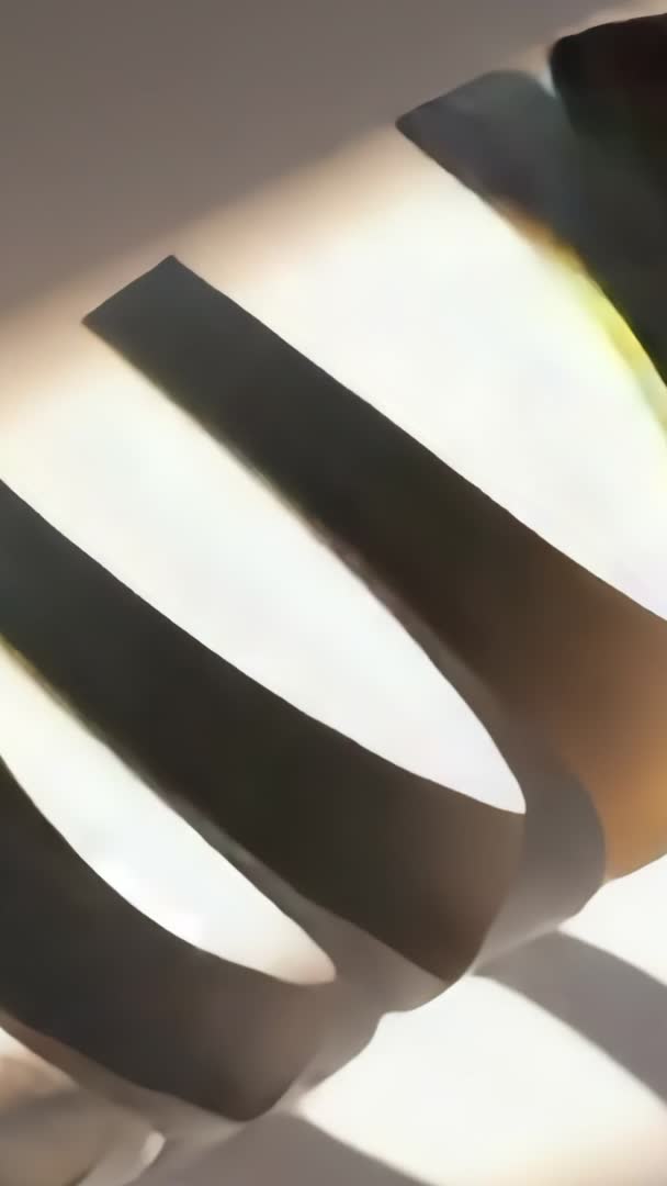 AI Generated Image. Tilting camera revealing curved black slats glowing in bands of light across smooth metal surfaces. Close-up vertical composition emphasizing abstract pattern, depth, and contrast between dark slats and bright background. Slow motion cadence creating calming, ambient mood with subtle highlights and shadow play. Suitable for vertical social media videos, Instagram Reels, TikTok backgrounds, and website hero sections. Working well as atmospheric backdrop for product overlays, title cards, or motion graphics. Pairing with ambient music, electronic beats, or voiceover for design-focused promos, architecture reel, or furniture brand storytelling. Providing loopable clip for digital signage, retail display, or hotel lobby screens. Delivering modern, sophisticated aesthetic for interior design presentations and creative portfolios.