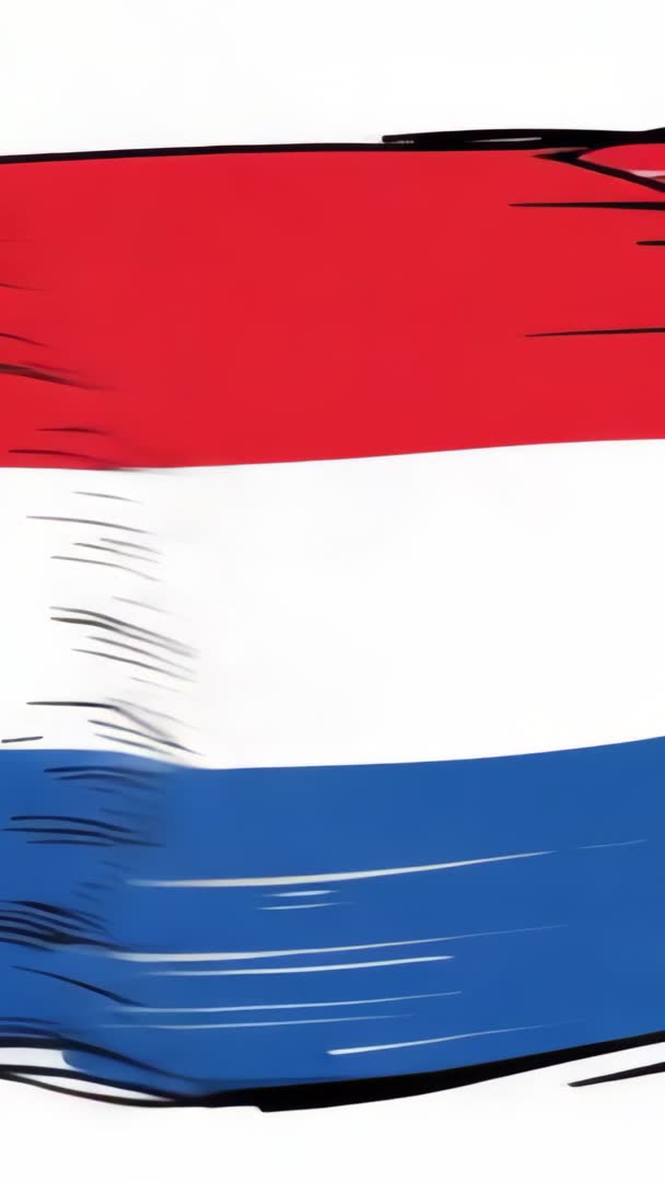 - Vertical video animating hand drawn Netherlands flag waving with brushstroke motion
