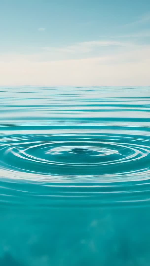AI Generated Image. Vertical clip capturing central bubble forming dome on turquoise sea and sending concentric ripples across calm surface. Composition emphasizing smooth horizontal lines, soft horizon, and pastel color palette, creating minimalist meditative visual. Suiting background loops for wellness apps, spa and yoga promotional videos, mindfulness and relaxation content, and social media stories and reels. Serving website hero banners, slideshow transitions, environmental campaigns, and branding projects seeking serene ocean imagery. Suggesting loop edit for seamless motion, slow playback for calming effect, and overlaying gentle ambient sound or soft music for immersive experience. Offering versatile aspect ratio for mobile-first vertical formats and easy cropping for landscape placements. Stock licensing options supporting commercial and editorial use.