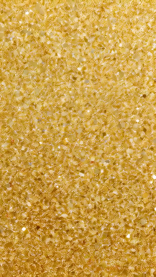- Vertical video capturing closeup gold sequin shimmer with drifting highlights and sparkle
