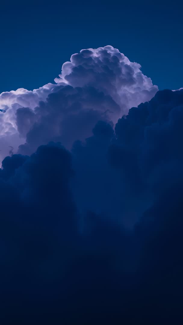 AI Generated Image. Vertical 9:16 footage showing cumulonimbus cloud rising through deep twilight, rim lighting revealing dome and anvil silhouette. Strong contrast between illuminated upper cloud and dark base creating dramatic, moody atmosphere. Ideal for use as background for weather reports, storm coverage, or nature documentary B-roll. Working well for vertical social media stories, phone wallpaper, atmospheric advertising, and cinematic transitions. Suitable for editorial use in climate change features, storm chasing content, or inspirational visualizations. Color palette dominated by deep blue and violet tones, providing high-impact, emotive visuals.
