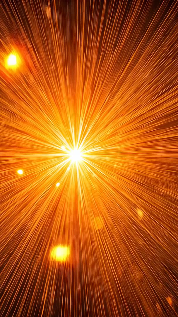 AI Generated Image. Vertical video showing intense orange flare radiating outward from central hub with thin light rays and sparks streaking across frame. High-energy motion creating dramatic burst of warmth and ember glow, enhanced by long exposure streaks and motion blur. Clip working well for opening title sequences, music video intros, festival and celebration promos, concert visuals, technology or science presentations, and dynamic social media stories. Suitable for looping backgrounds, hero banners, transitional overlays, and visualizers where energetic radial motion is needed. Color grading suggestions: boost warm tones and contrast for cinematic feel or desaturate surrounding areas for high-impact focal flare.