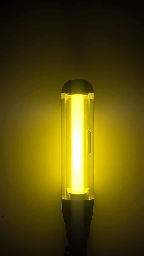 AI Generated Video. Vertical clip showing glowing yellow LED inspection lamp, camera centering and zooming in to reveal illuminated core and soft halo. Lighting creating strong yellow glow and subtle vignette, contributing to modern high-contrast aesthetic. Footage fitting vertical formats such as Instagram Reels, TikTok, Snapchat, mobile ads and product listings. Serving product demos, advertising banners, hero headers, tech tutorials, safety training and repair walkthroughs. Looping as background visual, editing with color grade to match brand palette and adding logo overlay or text bars for messaging. Pairing with ambient electronic music or minimal beats and applying slow fade or zoom transitions for polished commercial use.