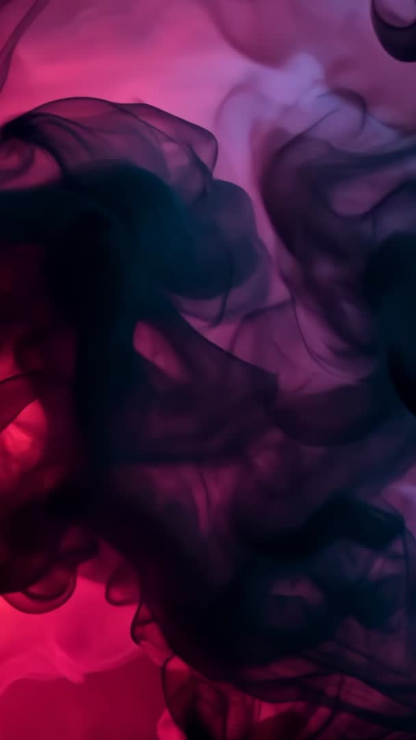 AI Generated Image. Capturing dark ink plumes rising and swirling through pink-tinted water, creating layered translucent shapes and smooth gradients. Showing high-contrast color transition between deep teal-black ink and magenta-pink backdrop, with soft edges and flowing coils that suggest motion and depth. Ideal for vertical social media content such as Instagram Stories, TikTok backgrounds, phone wallpapers, and app intros. Working well as music visualizer or VJ loop, opening title backdrop, product overlay, beauty and fashion campaign element, experimental film insert, or motion design asset. Recommend using loop mode and adding subtle zoom, parallax, or blend modes for dynamic effect. Leave crop-safe margins at top and bottom for text and logo placement. Provide color grading options to match brand palettes or to create moody, vibrant, or pastel variations.