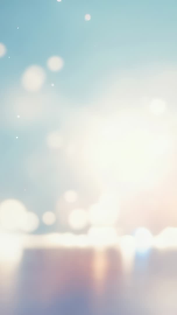 AI Generated Image. Video depicting drifting white bokeh orbs pulsing over sky-blue gradient merging with warm golden glow, conveying tranquil and airy mood. Composition featuring soft focus layers, subtle sparkles, and gentle light leaks, creating ethereal and minimalist aesthetic for modern projects. Working well for mobile app intro, social media stories and reels, vertical ads, meditation and relaxation content, wedding title intros, product highlight overlays, event openers, and seasonal campaign headers. Editing tips: looping seamless 8-20 second clips, slowing playback for softer effect, adding subtle text overlays or logo reveal with low opacity. Color palette favoring cool blue tones with warm golden highlights, compatible with overlaying white or dark text for strong legibility and branding.