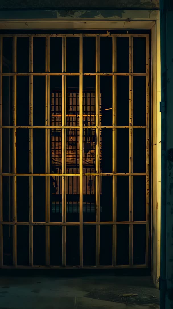 AI Generated Video. Vertical footage showing amber-lit metal barred gate in narrow industrial corridor. Strong contrast between warm light and deep shadows creating moody cinematic atmosphere. Rust and chipped paint conveying weathered industrial texture. Camera angle emphasizing vertical lines and sense of confinement. Working well as establishing shot for security content, thriller intros, crime drama sequences, documentary b-roll on corrections and detention. Serving as vertical background for Reels, Stories, TikTok with overlay text, animated titles, or lower-third graphics. Supporting marketing campaigns for industrial safety, locksmith services, urban exploration tours, abandoned building restoration. Consider color grading for high contrast, adding subtle camera shake for realism, applying slow dolly-in or rack focus to build tension. Optimized for vertical social platforms and mobile-first storytelling, suitable for tense opener or atmospheric transitional clip.