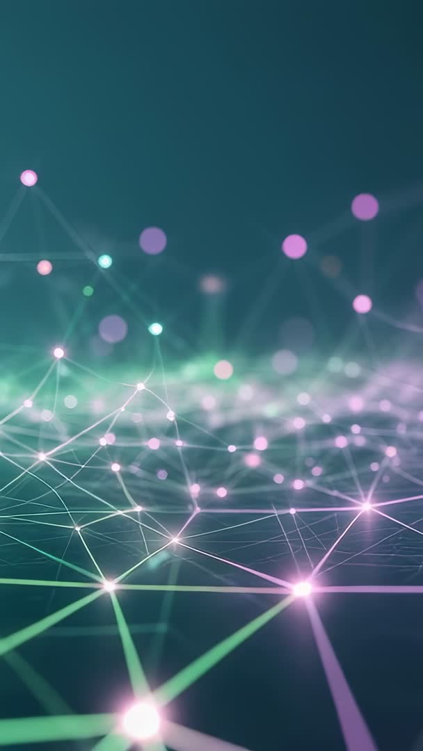 - Vertical video forming neon node mesh in teal and purple, futuristic connectivity animation