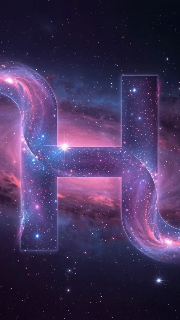 Vertical video Glowing cosmic letter H swirling through pink purple nebula in deep space Video