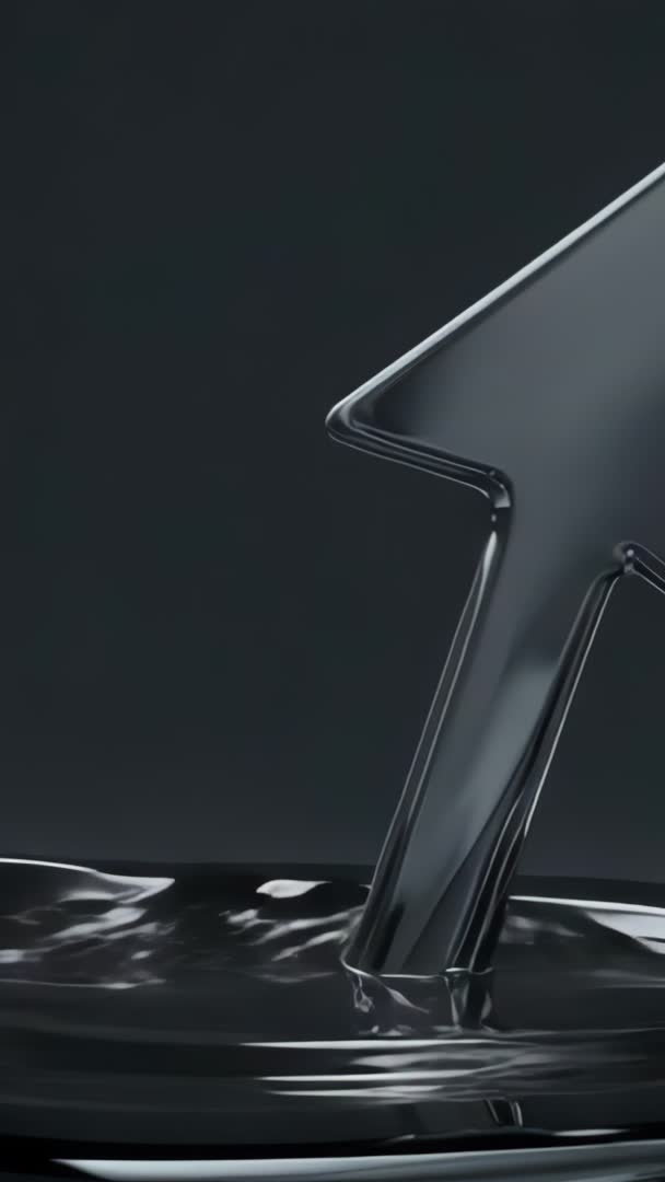 - Vertical video: Metallic arrow rising from rippling black liquid with glossy reflections
