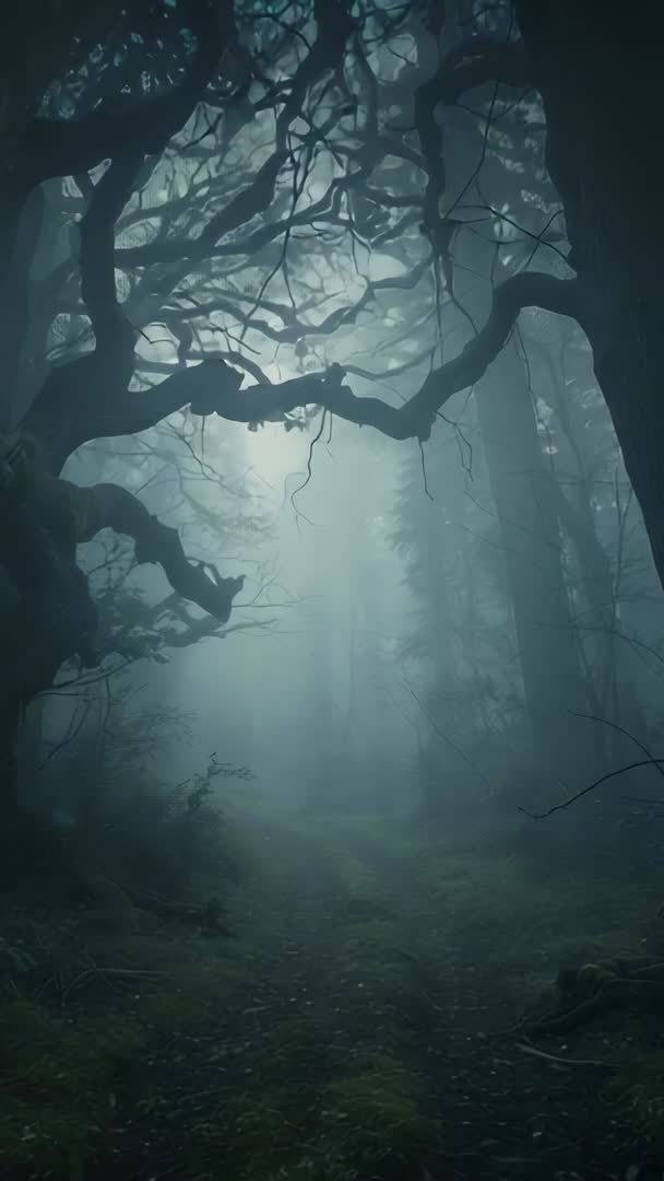 AI Generated Image. Drifting mist unveiling twisted branch arching over mossy trail in pine forest, creating moody, cinematic mood. Vertical composition emphasizing depth and height with soft light filtering through tall trunks and diffused fog. Footage suiting horror opener, fantasy trailer, nature documentary teaser, meditation background, atmospheric title sequence, Halloween promo, game environment backdrop. Color palette favoring cool green-blue tones and low contrast for mysterious feel. Editing tips: pairing with ambient soundscape or subtle orchestral swell, using slow push-in or parallax to enhance immersion. Licensing suggestions: suiting broadcast, social vertical ads, mobile wallpaper, streaming intros and background loops for digital projects.