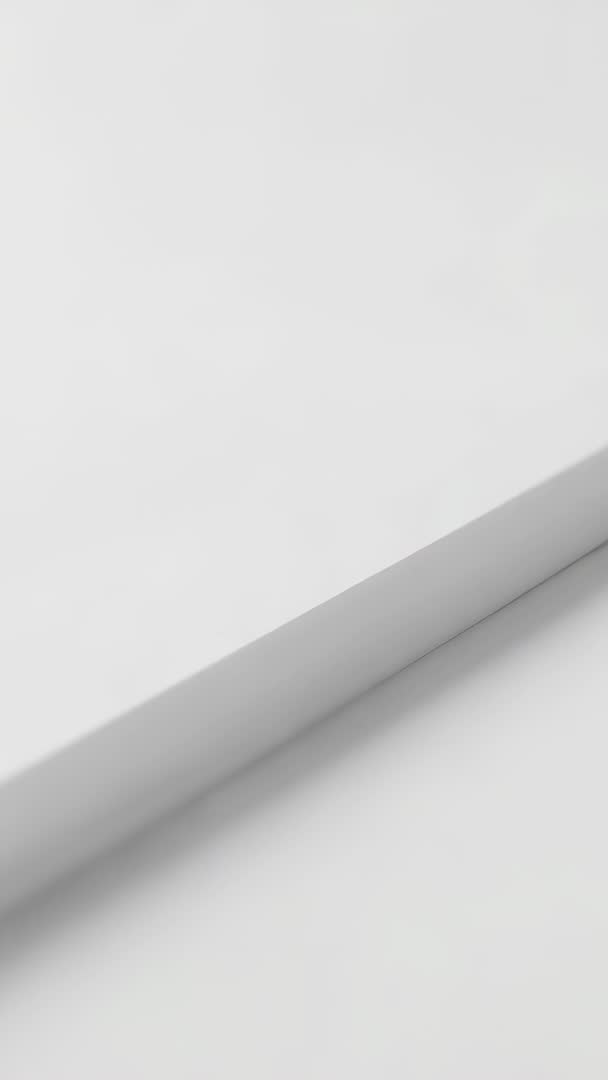 AI Generated Video. Moving camera nudging white diagonal edge across smooth table surface, revealing subtle crease and soft shadow. Minimal monochrome closeup emphasizing diagonal line, geometry, texture and negative space. Providing clean vertical composition optimized for smartphone stories, reels and mobile ads. Leaving ample empty top area for overlay text, logos and motion graphics. Working well as background for product showcases, brand intros, editorial openers, mindfulness apps and social media transitions. Suitable for looping and slow motion, being color graded to warm or cool tones, and pairing with ambient audio to create calming visual atmosphere.