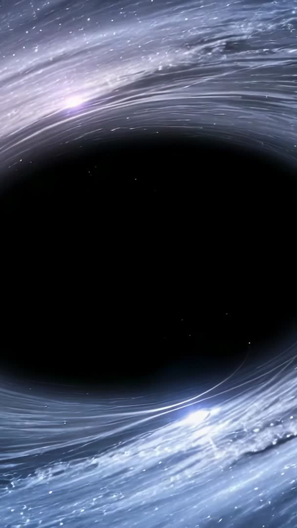 AI Generated Image. Showing vertical footage of swirling black hole core surrounded by luminous accretion disk and streaking stellar particles. Dark central void providing clean area for overlay text or title cards. Gravity-driven arcs and flares creating cinematic motion and depth for slow-motion intros, sci-fi trailers, documentary segments, or educational clips explaining accretion physics. Loopable composition working well for vertical social videos, Instagram Reels, TikTok, YouTube Shorts, mobile banners, and AR scenes. Color palette featuring cool blues and soft flares fitting technology, space research, and futuristic brand campaigns. Providing option for color grading, slow zoom, and particle glow enhancement to match project tone.