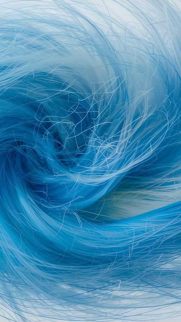 AI Generated Video. Vertical video capturing swirling blue synthetic fiber strands tightening inward on pale backing after breeze. Macro closeup highlighting filament detail, soft texture, and flowing motion for abstract visual interest. Serving as loopable vertical background for social media stories, mobile wallpapers, and video intros. Working well for textile and yarn product promotion, craft tutorials, packaging design, and creative transitions in digital content. Shot with shallow depth of field and smooth motion, ideal for slow motion playback and subtle parallax effects. Color palette dominated by cool blues, offering calm, modern, futuristic mood. Allow adding text overlay in upper and lower thirds due to negative space near edges.