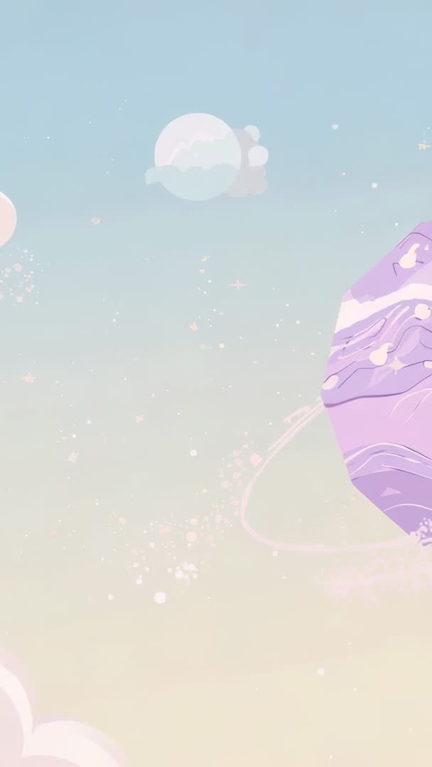 AI Generated Image. Featuring orbit ring pulsing and moon orb rotating in pastel cosmic sky with floating dust and glitter. Providing ample negative space for text overlay and logo placement. Serving ideal use cases including mobile wallpapers, Instagram Reels, TikTok backgrounds, app launch screens, meditation and sleep aid content, music visualizers, brand intros. Presenting color palette with soft blues, lavenders, creams supporting calm dreamy mood. Functioning as looping background for titles, promotional clips, UI mockups, event teasers, animated greeting cards. Delivered as high-resolution vertical clip ready for social media and multimedia projects.