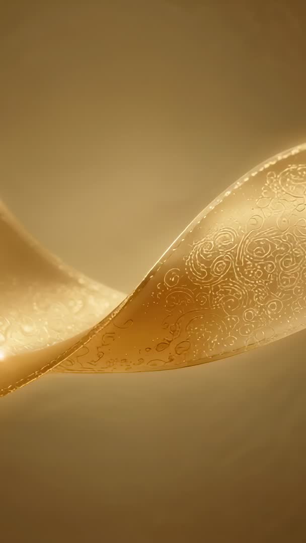 - Vertical video: Ornate golden ribbon undulating with embossed filigree, sparkles and metallic glow