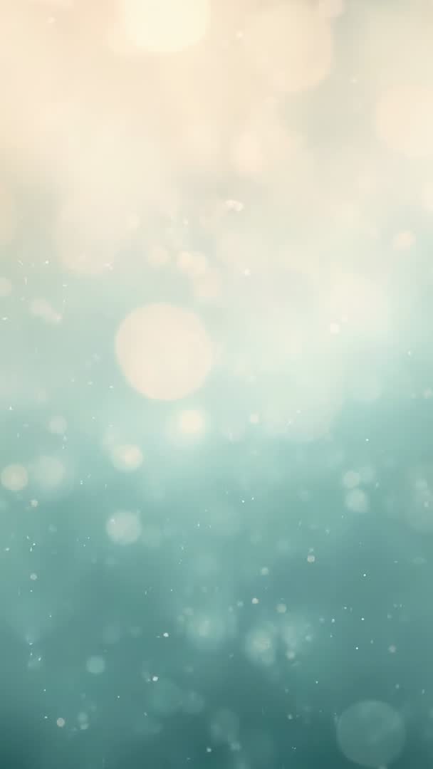 AI Generated Video. Vertical looping footage showing pulsing bokeh orbs drifting over teal-to-cream gradient. Soft glow and floating specks creating dreamy, elegant ambience for mobile content. Working well for social media stories, mobile ads, title cards, product promos, wedding intros, meditation app ambience, event invitations. Serving as overlay layer when blending modes set to screen or additive to enhance text legibility while preserving shimmer. Loop-friendly feel when trimmed for seamless repeats. Recommended color pairings: white, gold, coral, navy for strong contrast. Available in vertical 9:16 orientation for Instagram Stories, TikTok, Snapchat, mobile ad placements and vertical video projects.