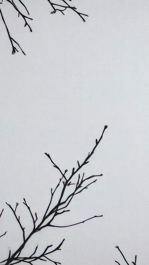 AI Generated Video. Footage capturing black branch decal silhouette against textured white wall while camera gently shaking, creating subtle motion and organic rhythm. Vertical orientation and generous negative space making ideal for mobile backgrounds, social media stories, product overlays, title screens, and vertical ads. Suiting minimalist branding, interior design promotion, meditation or relaxation content, seasonal decor campaigns, and editorial video. Soft contrast and monochrome palette enhancing readability for overlaid text and graphics. Close-up framing and shallow motion allowing seamless loop or slow pan edits. Licensing suggestions: using for website hero clips, Instagram reels, TikTok vertical ads, product reveal transitions, or mood-setting background for lifestyle and decor presentations.