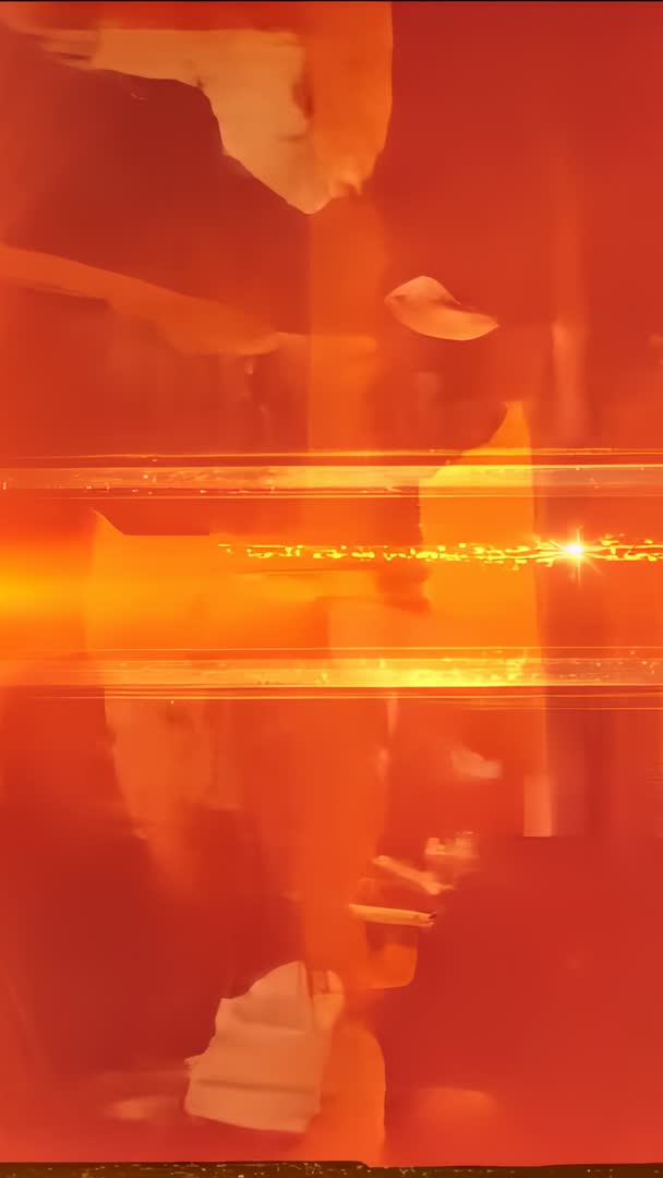 AI Generated Video. Vertical 9:16 video showing central horizontal glowing light band in saturated orange tones, casting bright lens flare and haze across frame, revealing two blurred silhouettes wearing tops. Composition featuring strong backlight, layered reflections and soft texture, creating moody abstract atmosphere and cinematic glow. Suited for social media stories, mobile ads, music video intros, fashion promos, festival visuals, and background for title overlays or lower-thirds. Usage tips: loop clip for seamless background, add subtle color grade to match brand palette, place text in darker areas for readability, combine with glitch or film grain for retro feel, use as transitional element between scenes. Deliverable works well as vertical background for apps, event promos, and editorial spreads needing warm, mysterious energy.