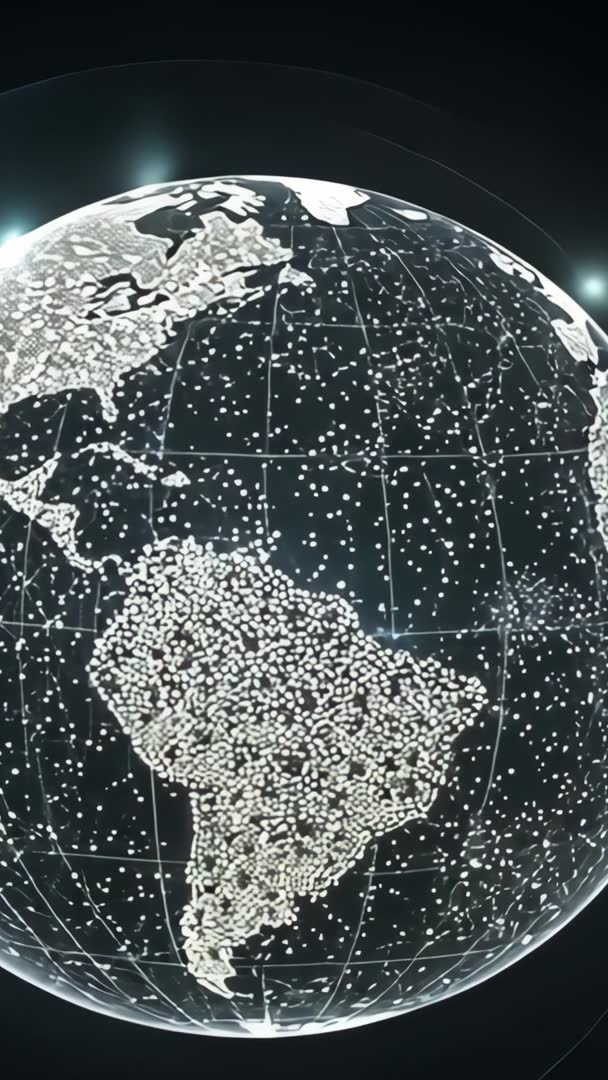 - Vertical video rotating 3D globe visualizing global data points with glowing gridlines