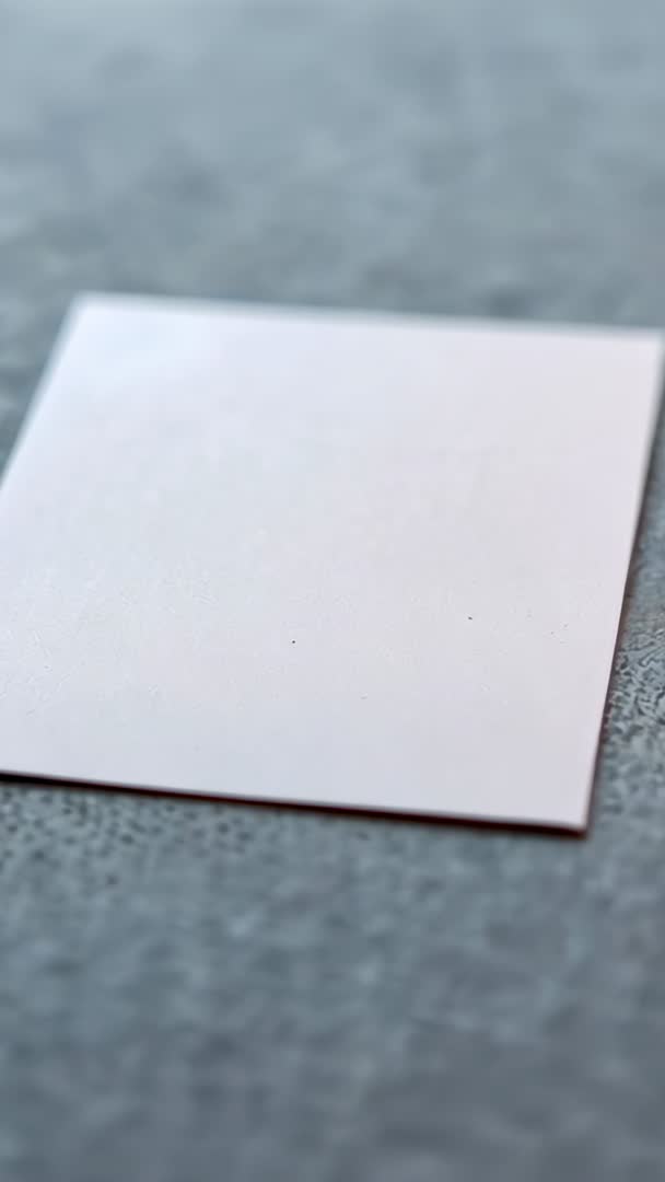 AI Generated Image. Vertical clip showing camera shifting and centering on white square paper resting on textured gray mat with faint specks and soft shadow. Minimalist composition creating generous negative space for text, graphics, logo placement or product mockup. Shallow depth of field and soft focus emphasizing subtle paper texture and edge shadow. Targeting vertical platforms like Instagram Reels, TikTok, Stories, mobile ad units for quick visual impact. Useful for stationery mockup, branding presentation, product reveal, invitation reveal, or minimalist commercial intro. Suggested edits include adding subtle color grade, overlay text, branded logo animation, or gentle parallax for dynamic reveal. Neutral tone and clean layout supporting corporate, lifestyle, or design campaigns. Available in high resolution video, ready for quick customization and fast integration into marketing assets.